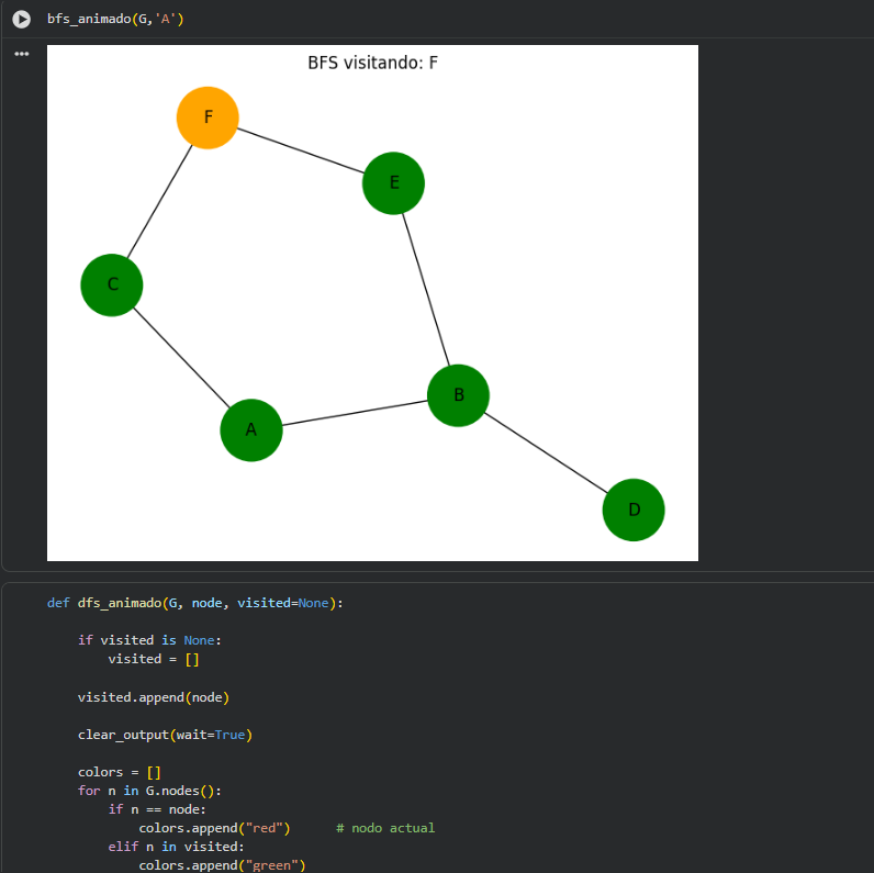 Implementación visual de los algoritmos BFS y DFS en Python para recorrer grafos.